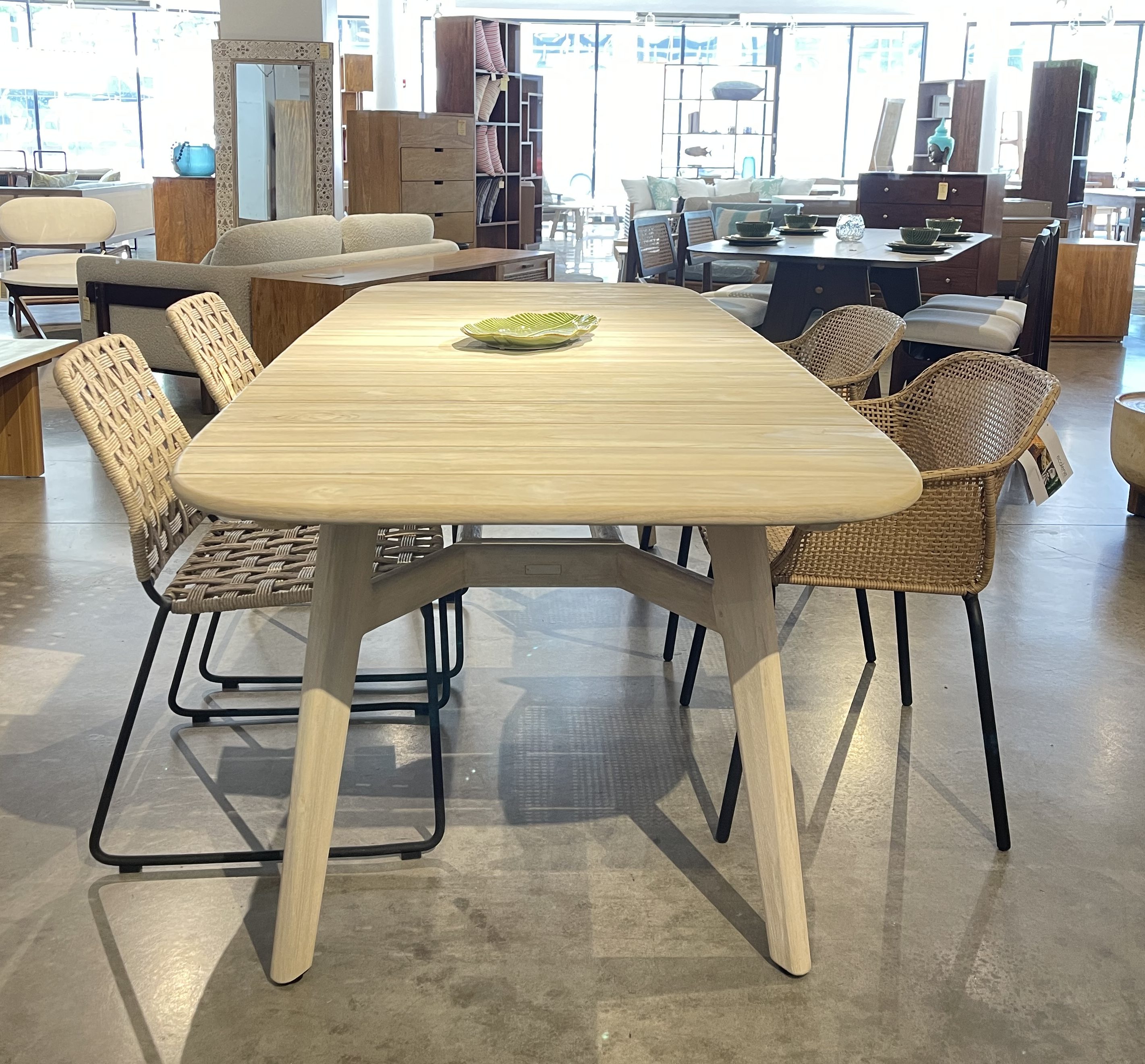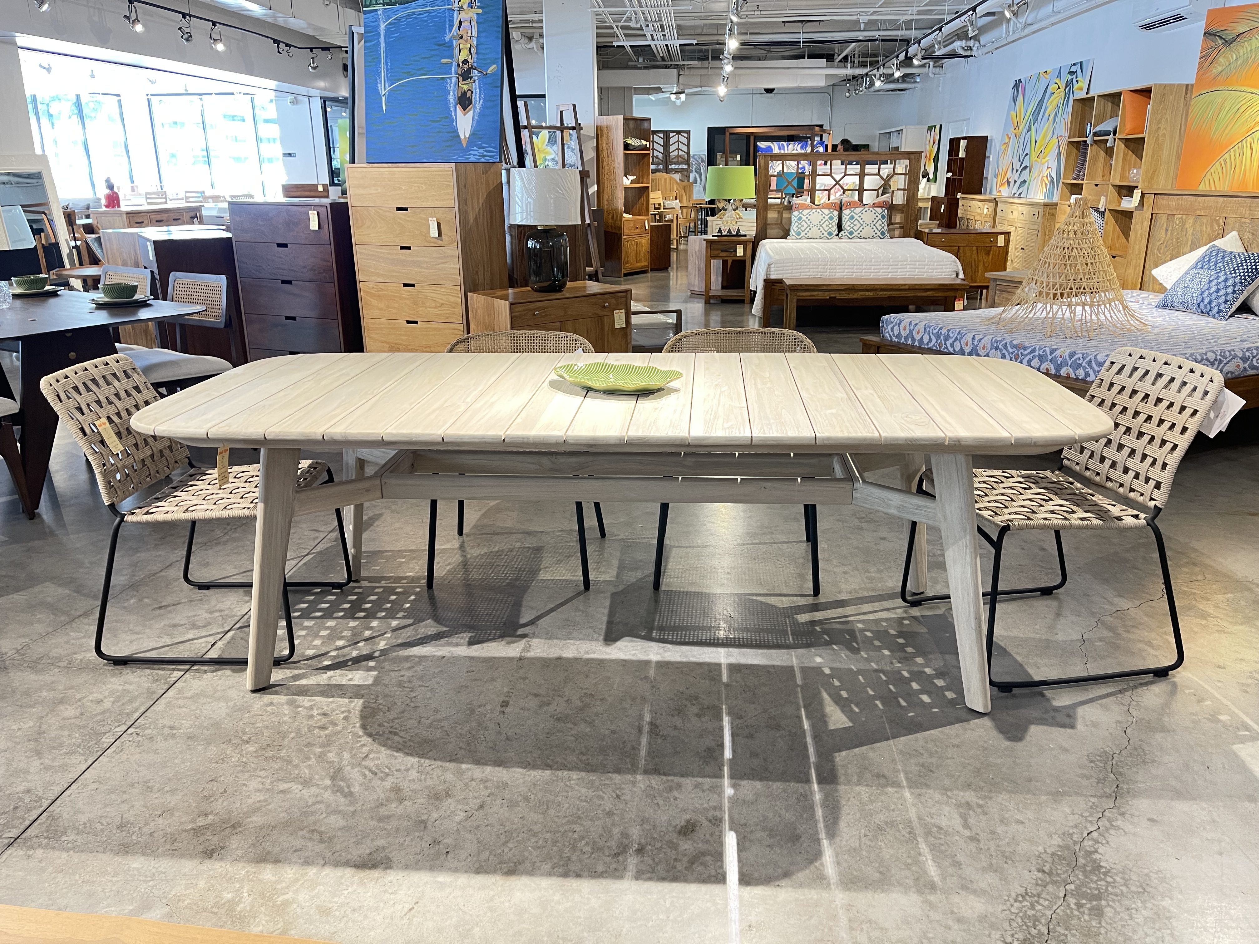 Upgrade your outdoor dining experience with our stunning solid Teak wood dining table in the captivating “Aged Teak” finish.