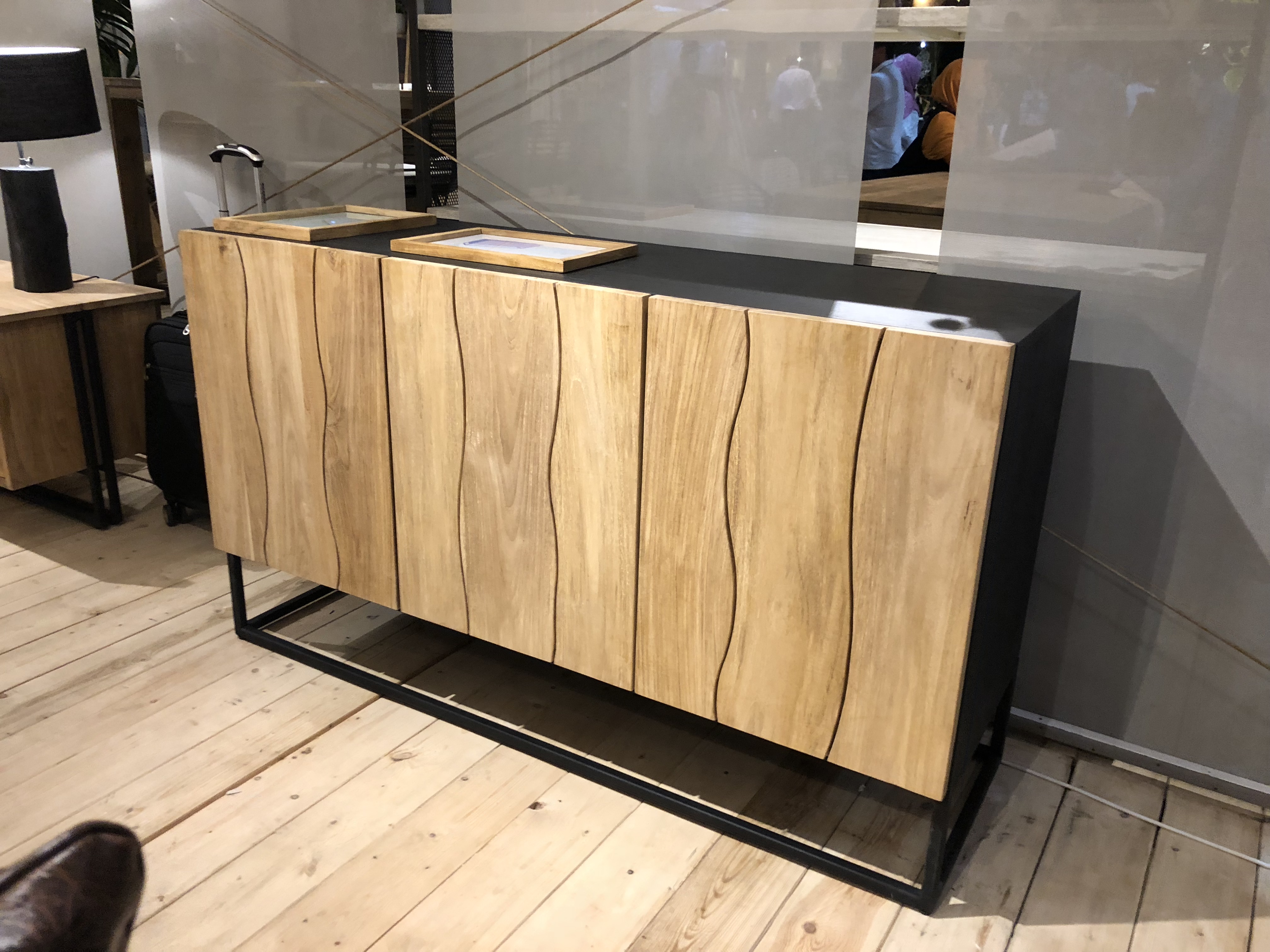 Clean line silhouette with curvy accent lines on the doors gives bold yet warmth looks from its combinations of black frame and fine sanded finish.