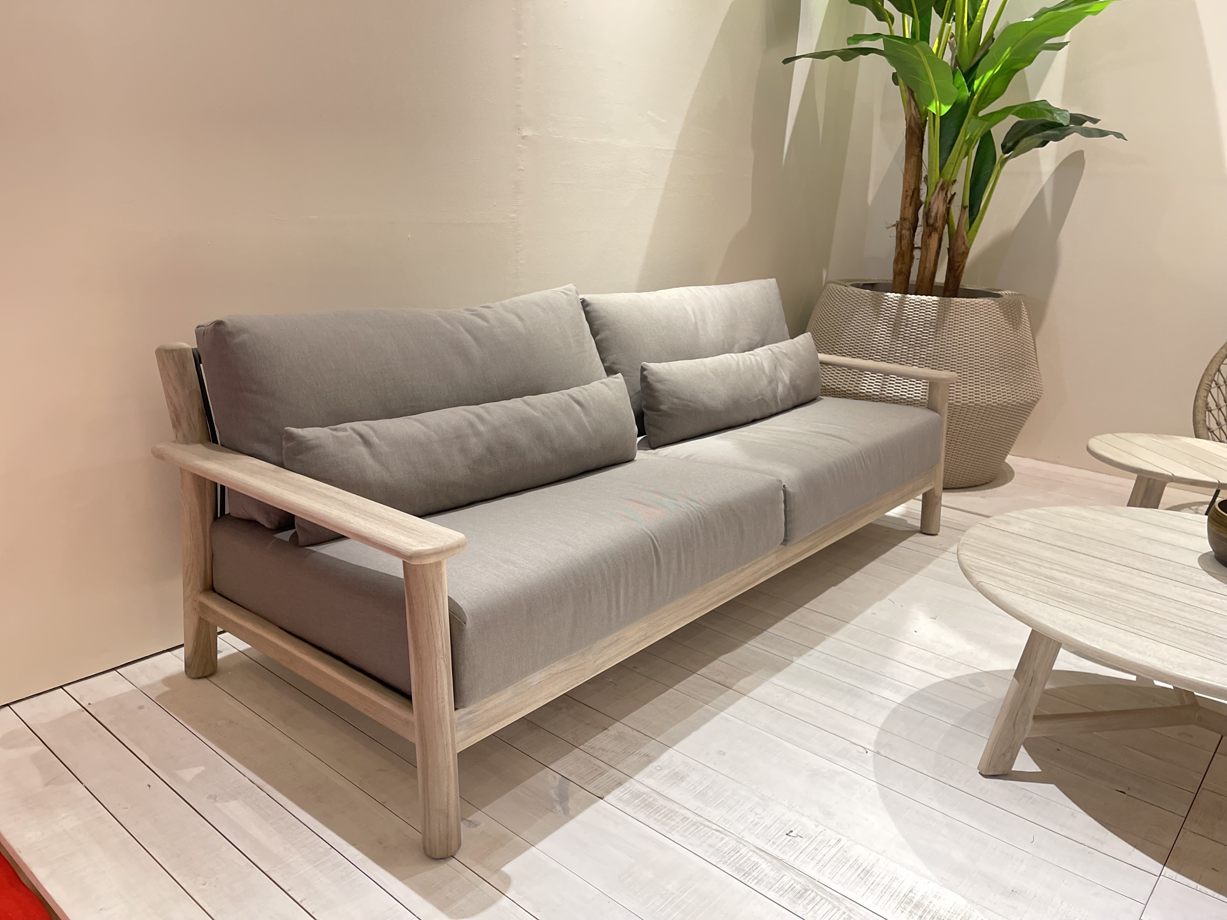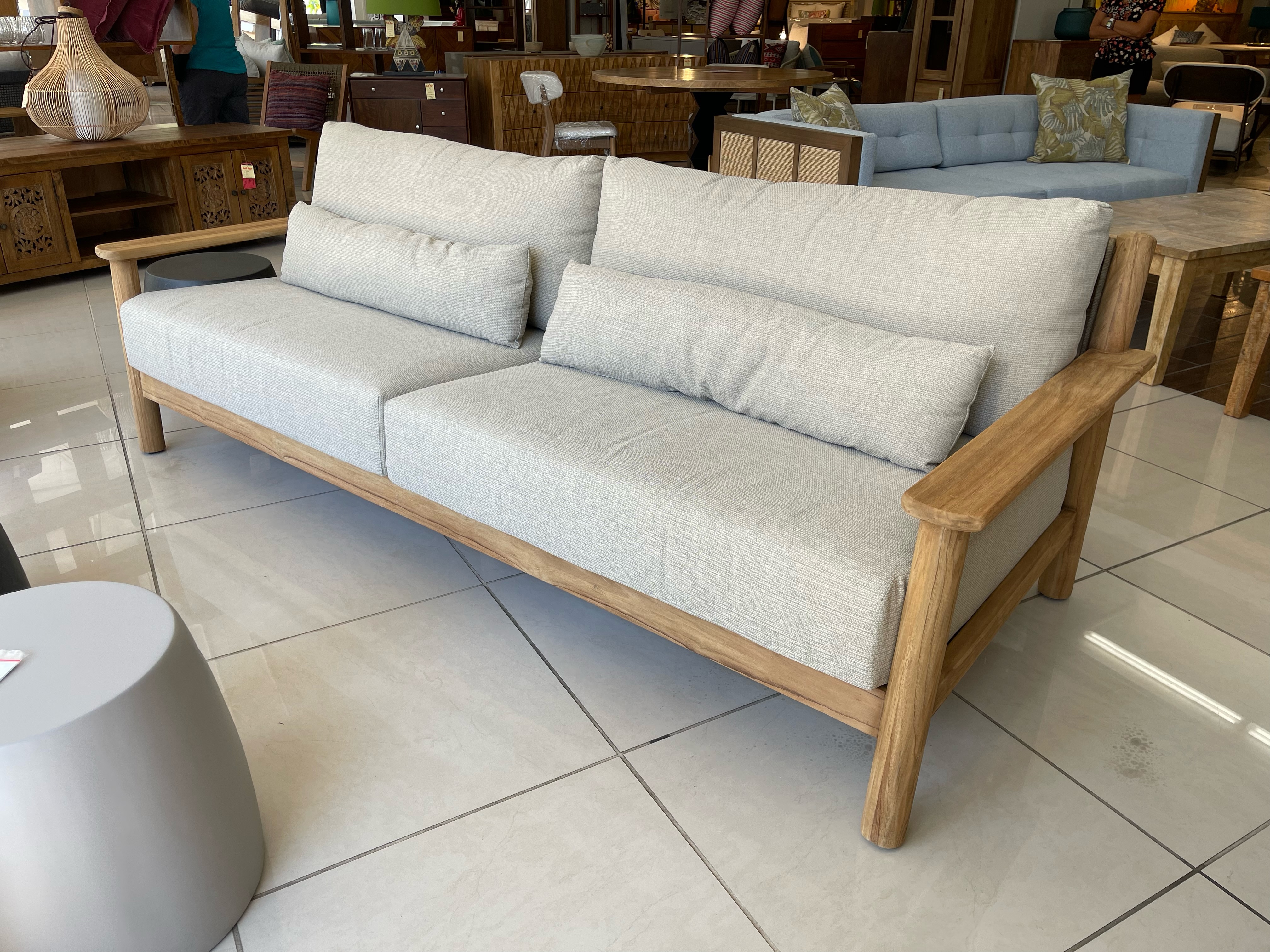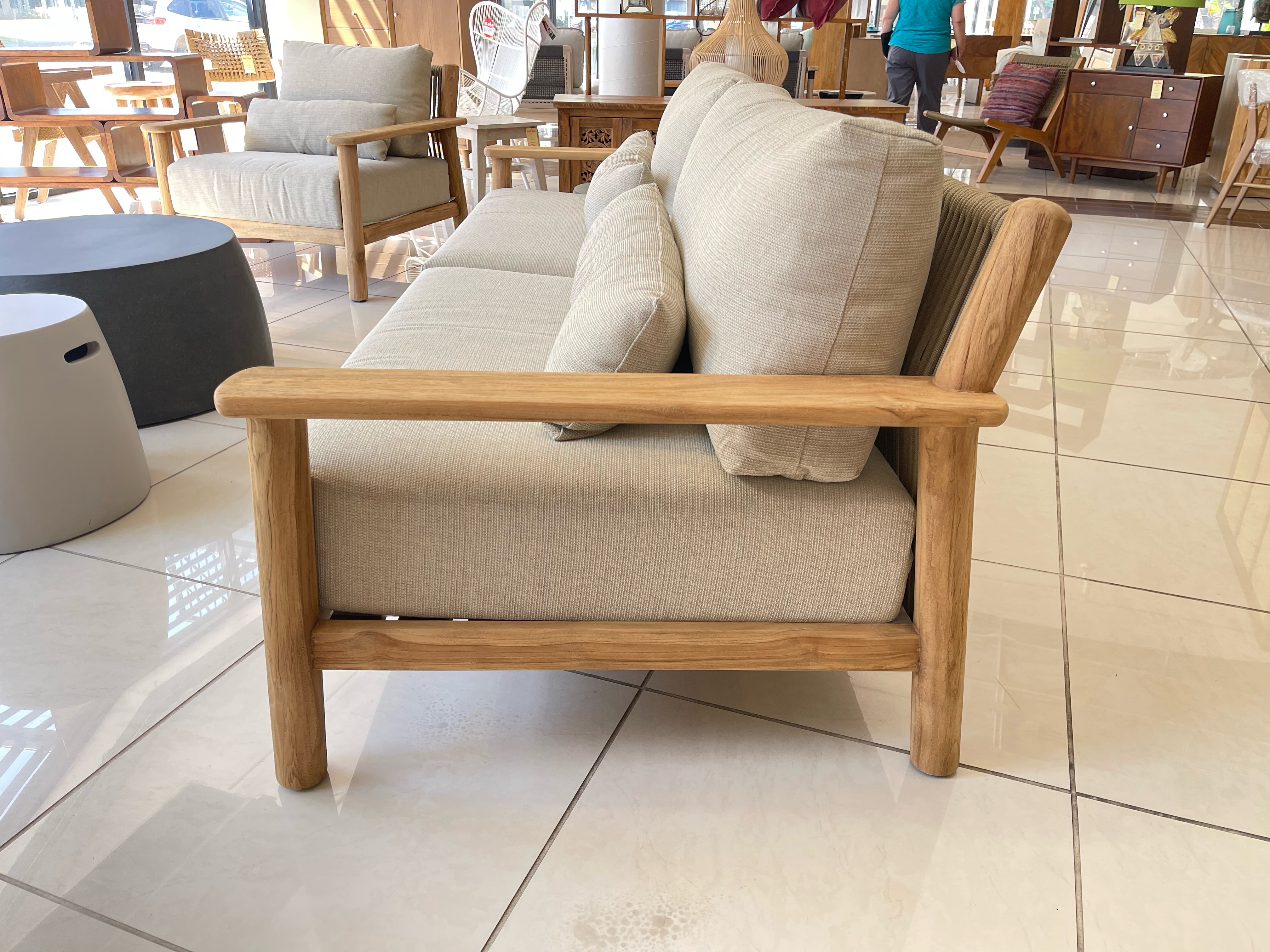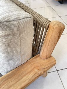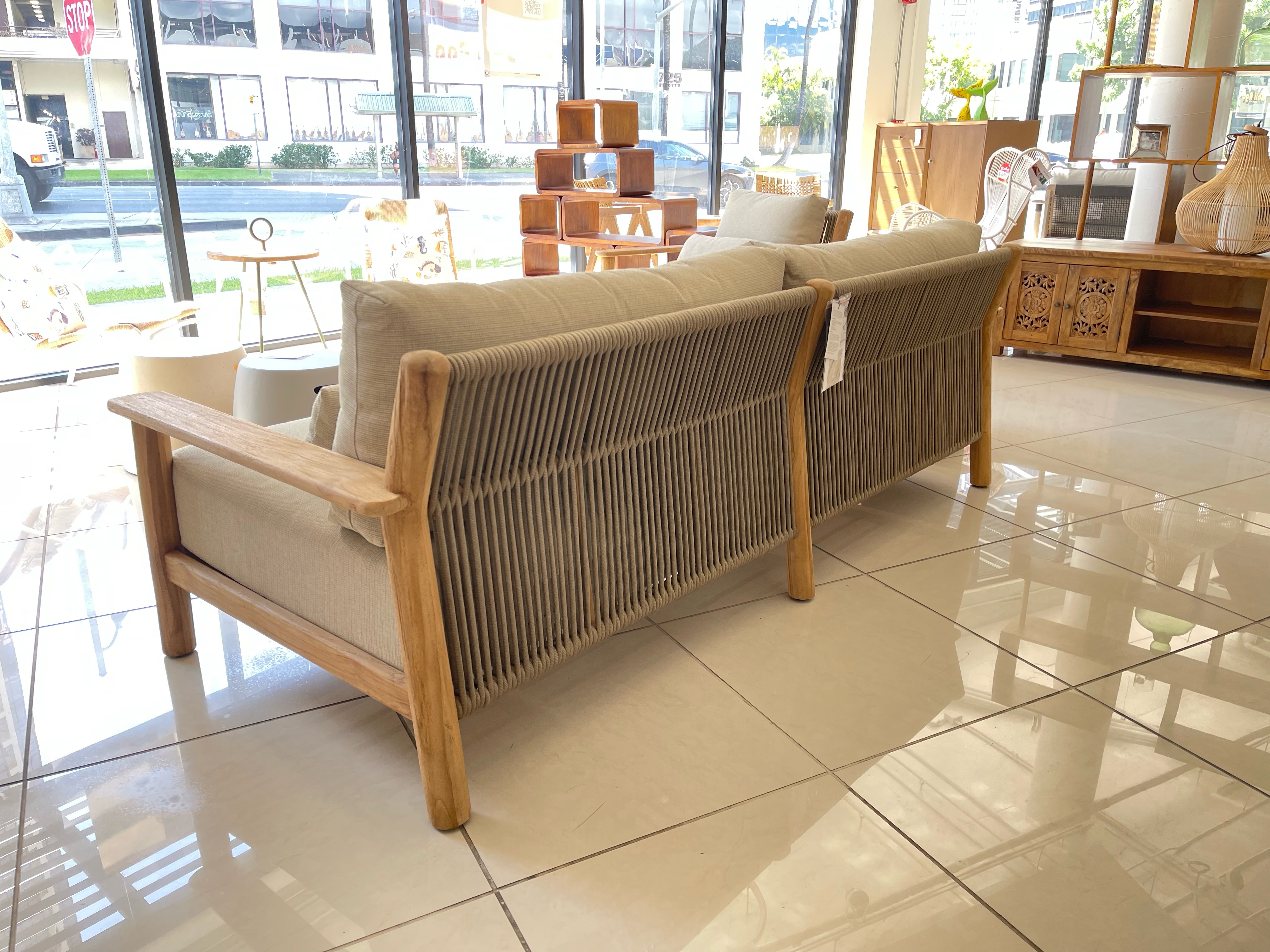 This combination of a solid teak wood sofa frame with a moisture-resistant rope made of thermoplastic polypropylene fibers creates a stunning piece of furniture that requires very little maintenance