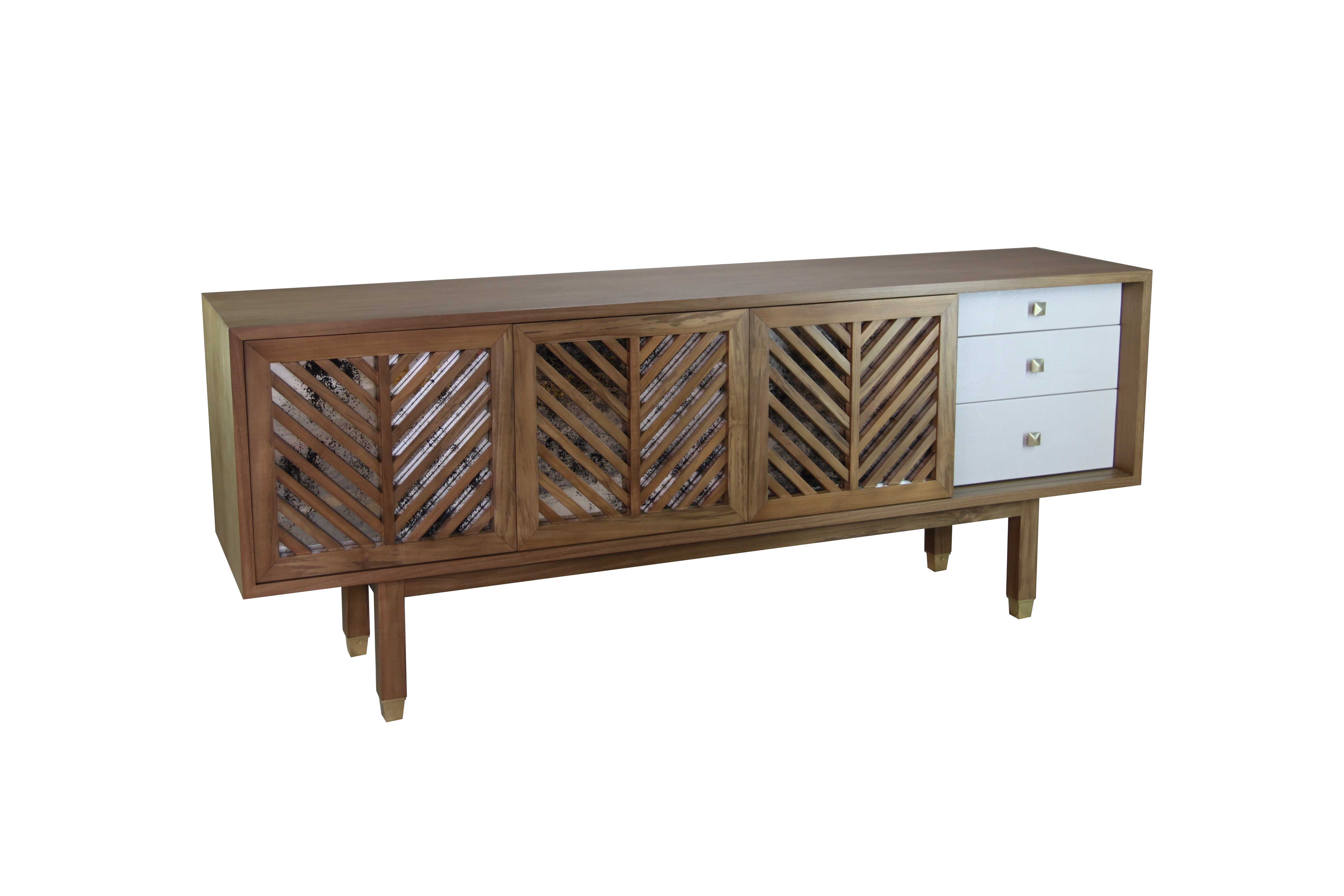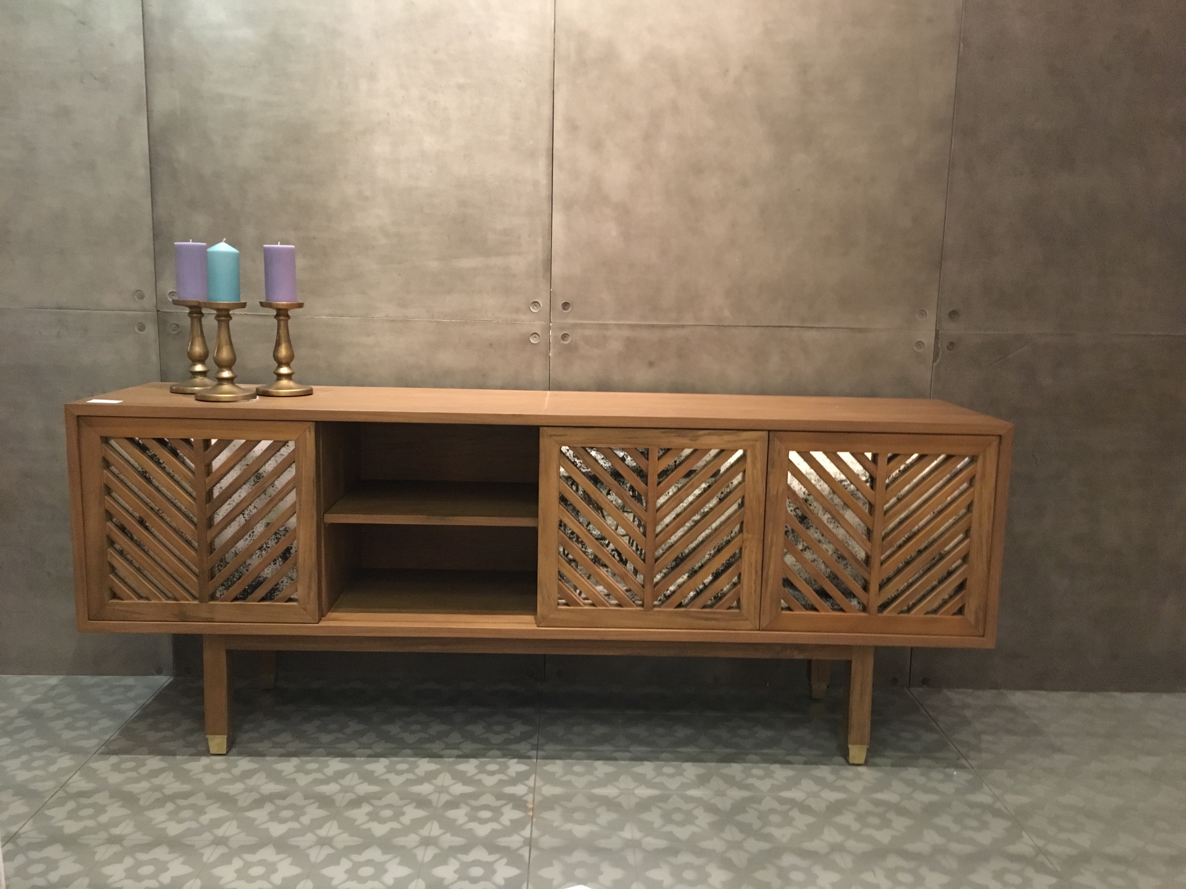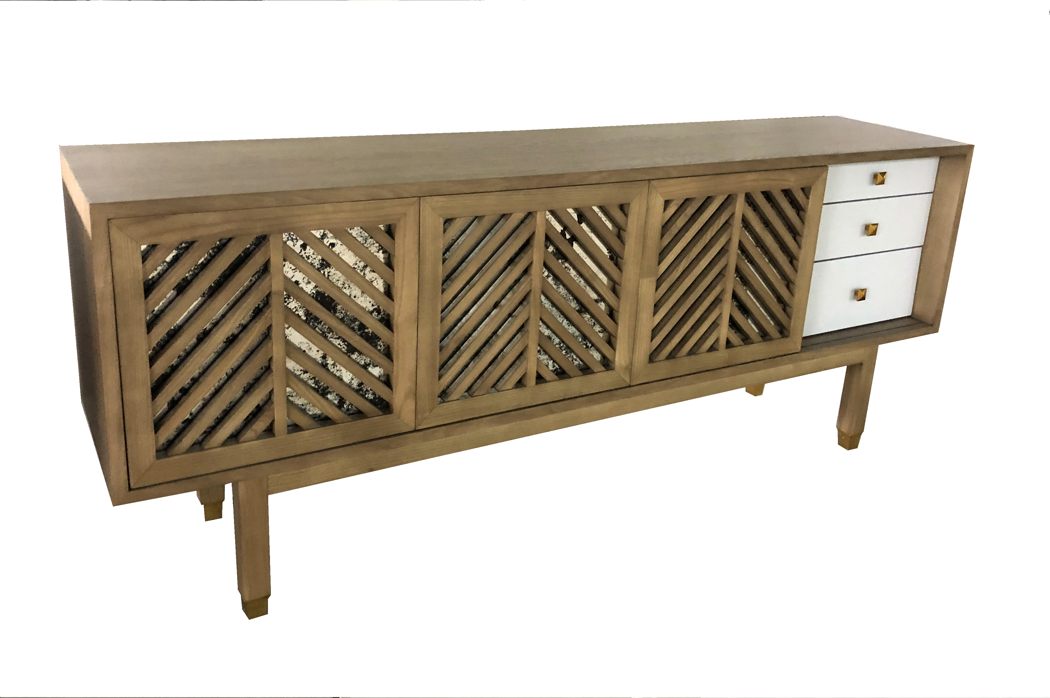 Finishing : Natural with Vintage Mirror and Light grey drawer front