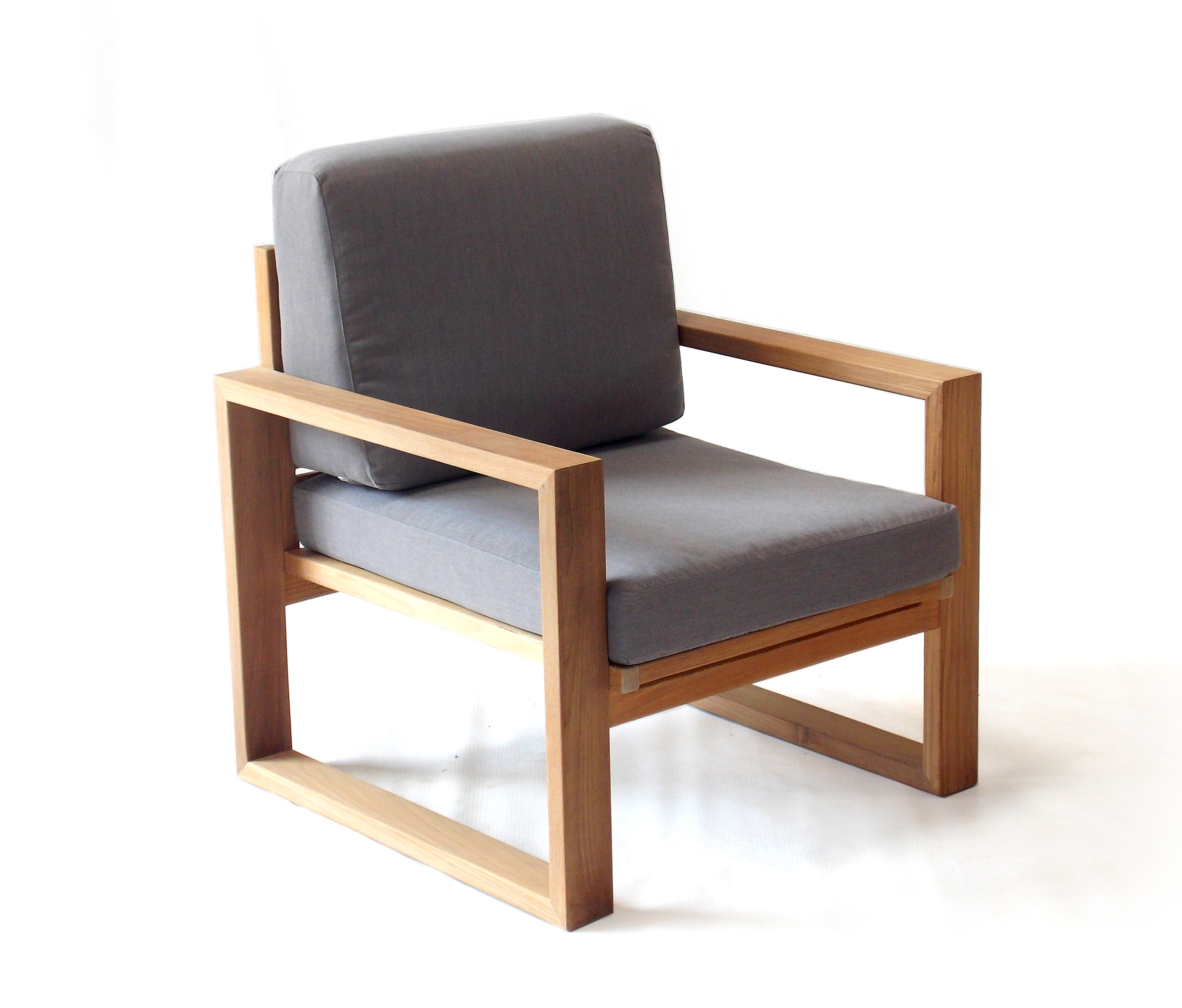 Solid teak wood Certified by the Forest Stewardship Council (FSC) in straight line, clean angle and hand made lounge chair simple yet chic for smaller space, lobby or reception area.