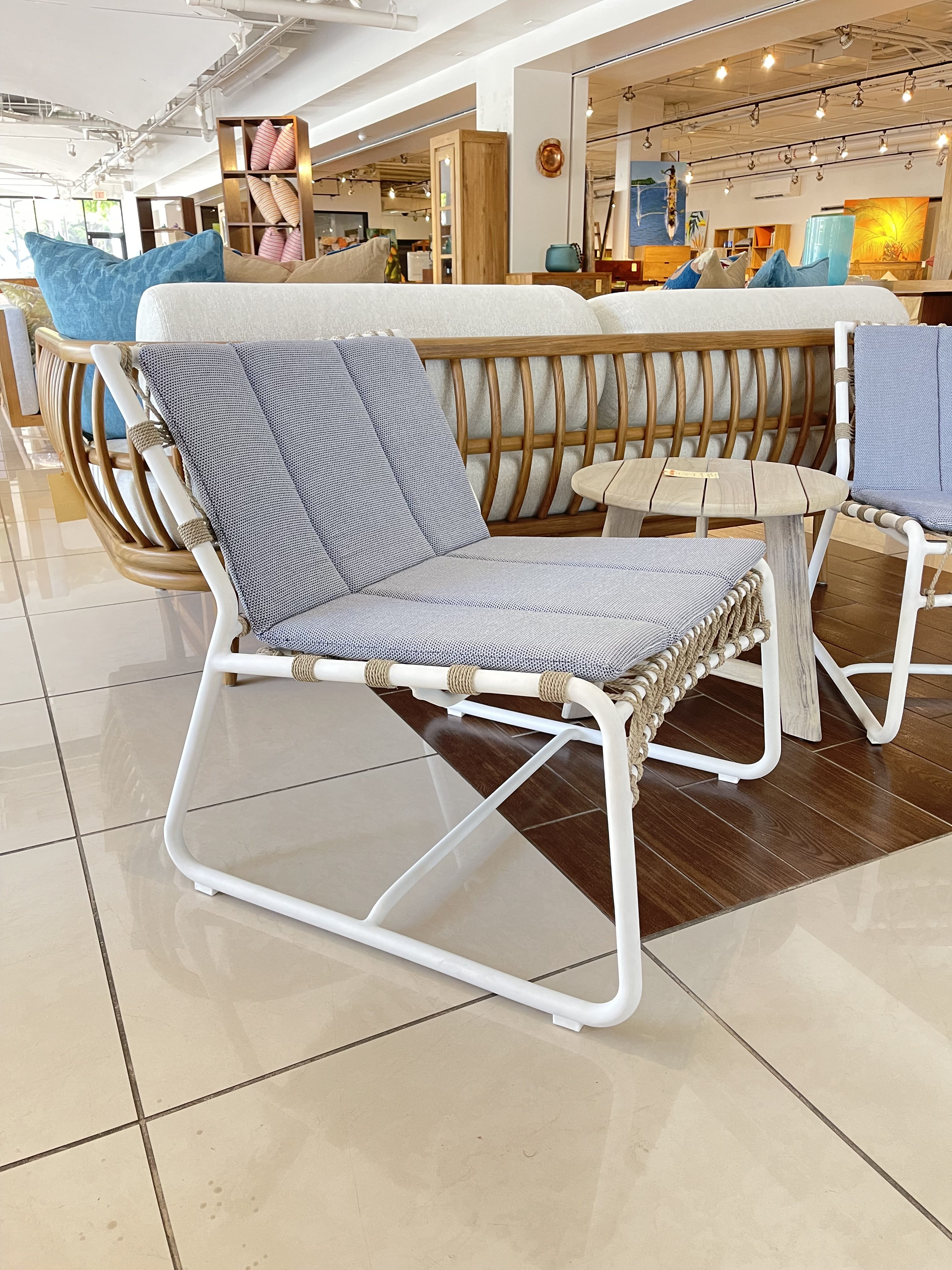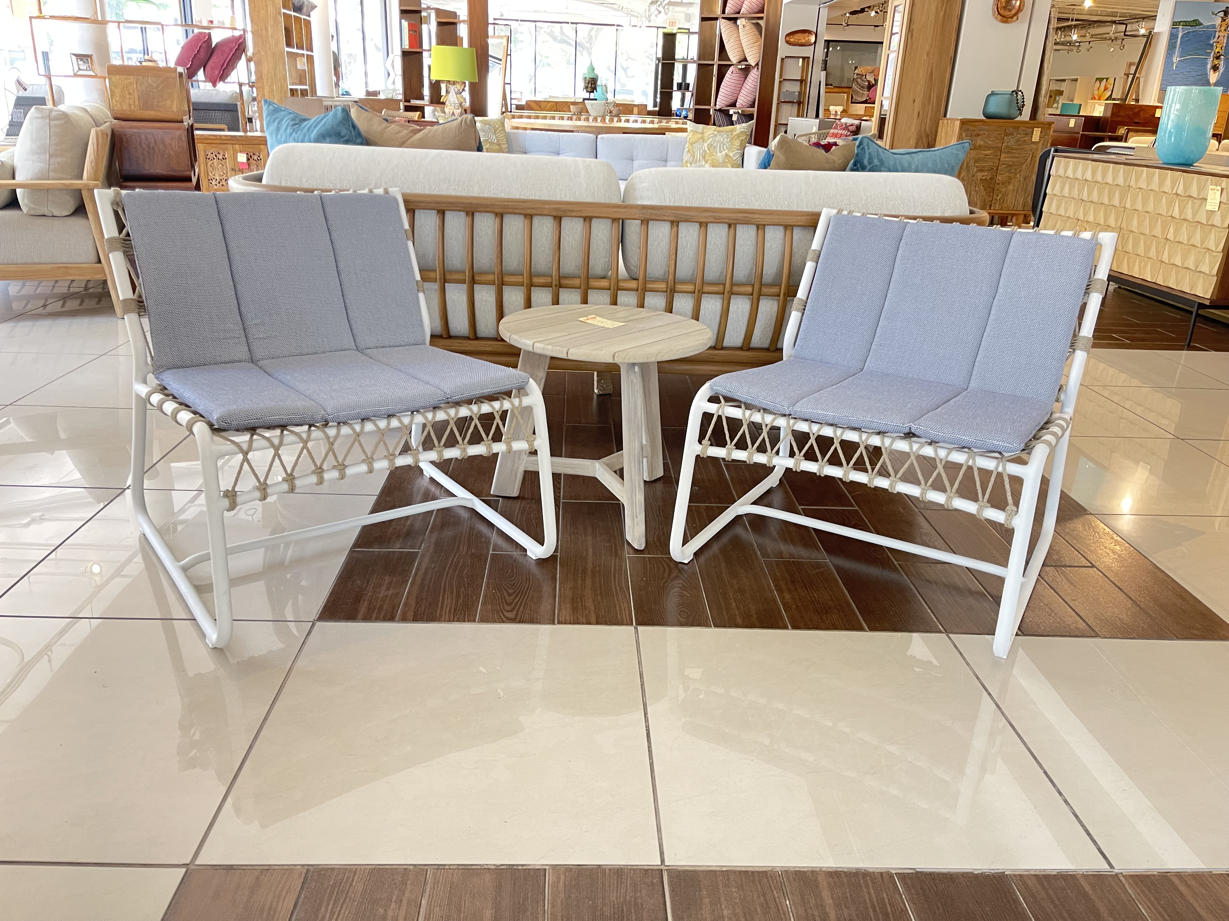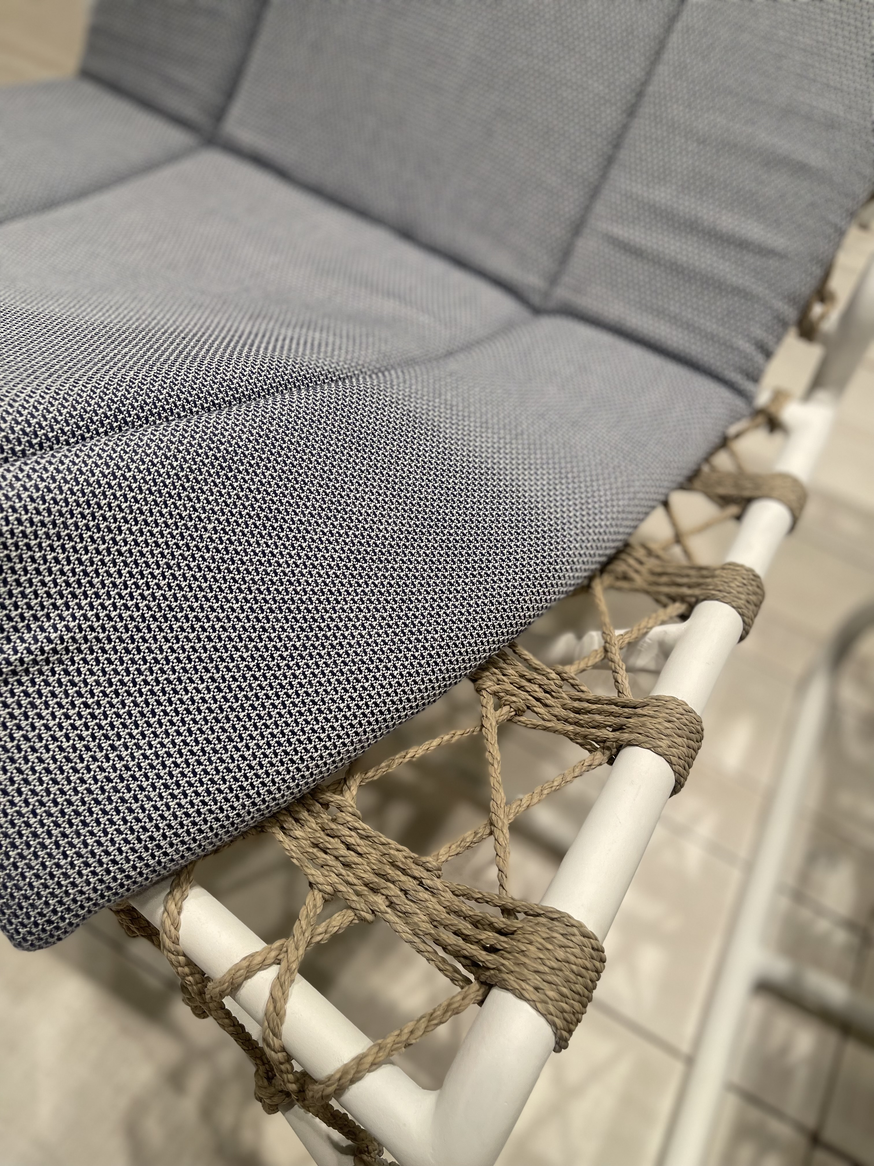 The unique weaving patterns of thermoplastic polypropylene fibers, also known as synthetic rope, are skillfully intertwined over a sturdy and durable powder coated aluminum frame, meticulously designed to meet and exceed the standard requirements of outdoor furniture.