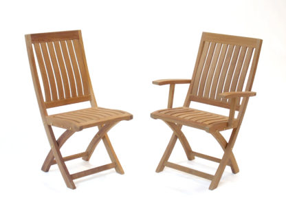 Compact foldable side chair constructed with curved back for lumbar support. Using Solid teak wood as material, this chair is durable furniture for Hawaiian weather. Bring out the beauty of it’s grain by applying teak oil or sealer, or leave it to the elements as it will turn in to silver patina color over time.