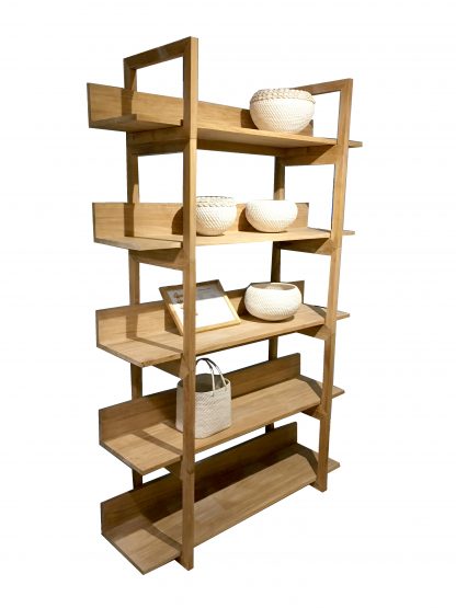 Solid teak wood bookcase spaciously for books and family keepsake.