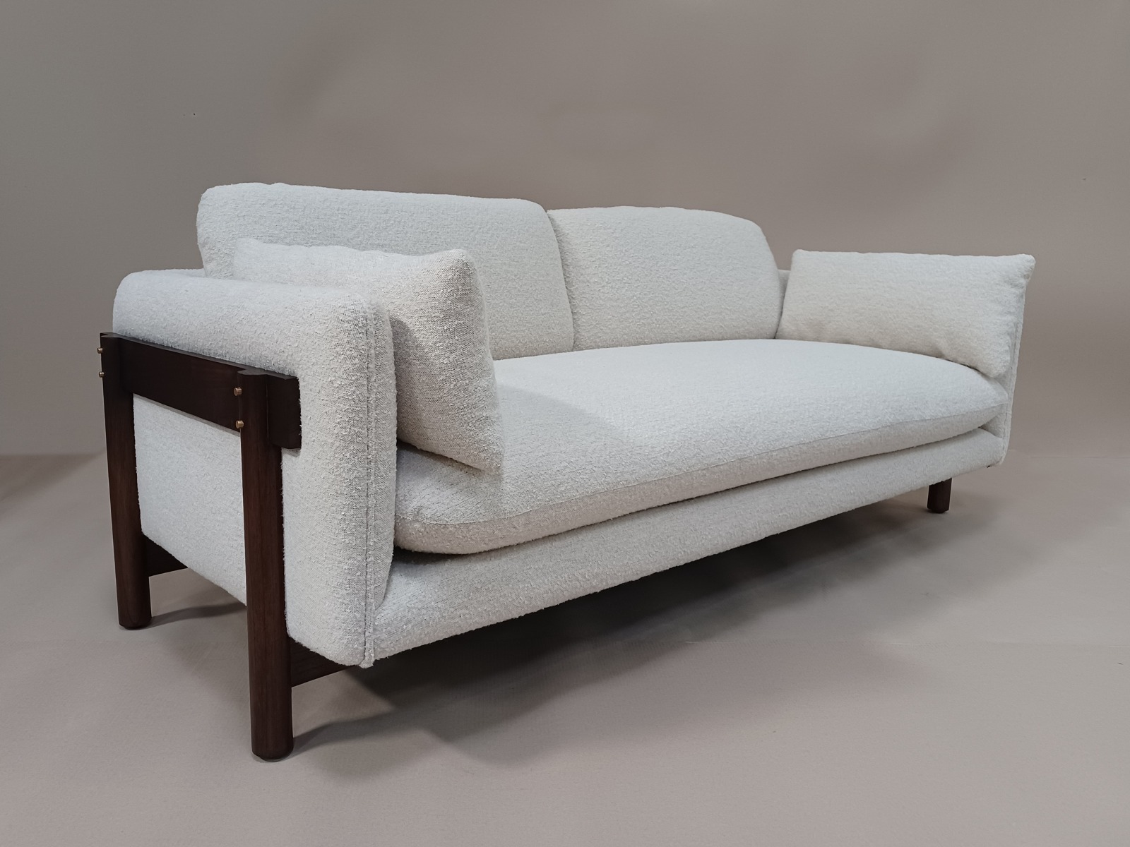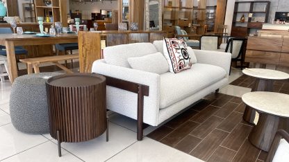 This sofa aesthetic showcasing clean lines and organic curves that effortlessly blend form and function. The use of Mindi wood as its frame ensure both durability and stability, allowing for long lasting enjoyment of this timeless piece.