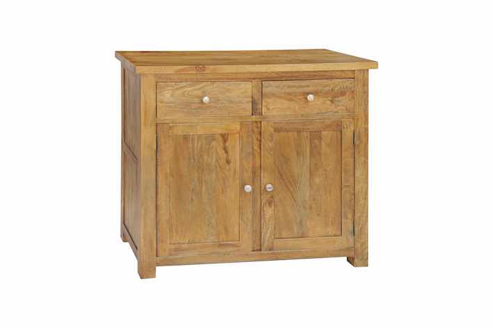 Multi purpose solid mango wood cabinet, with ball bearing glides on the drawers and spacious storage.